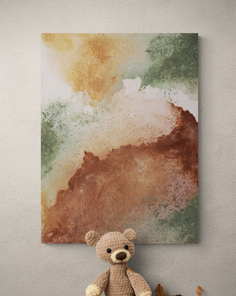 Nature’s textures come alive on the canvas. Valerija masterfully captures the rugged bark of ancient trees, the delicate veins of leaves and the earthy richness of the forest floor. Every detail speaks of the beauty found in every corner of the forest, inviting you to run your fingers over the canvas and feel the world that inspired these creations.