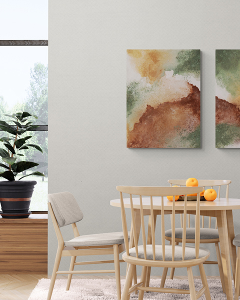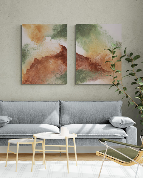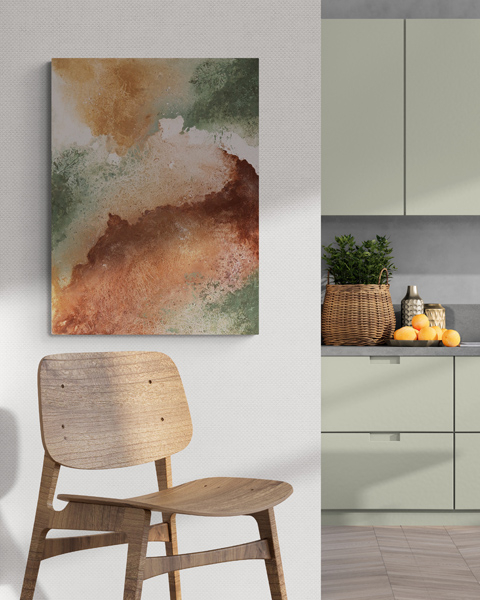 Those 15 paintings are a tribute to our profound connection with nature. Valerija’s vision transports you to the heart of the forest, where time seems to stand still and the forest becomes a place of solace and inspiration. In a world that often moves too fast, these artworks invite you to pause, breathe and reconnect with the Earth. The artist always likes to think of summer, so the warmth of the season is captured in the collection. The warm shades evoke the gentle kiss of the sun on the horizon, while the green shows the vibrant life that is at the heart of summer.
