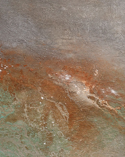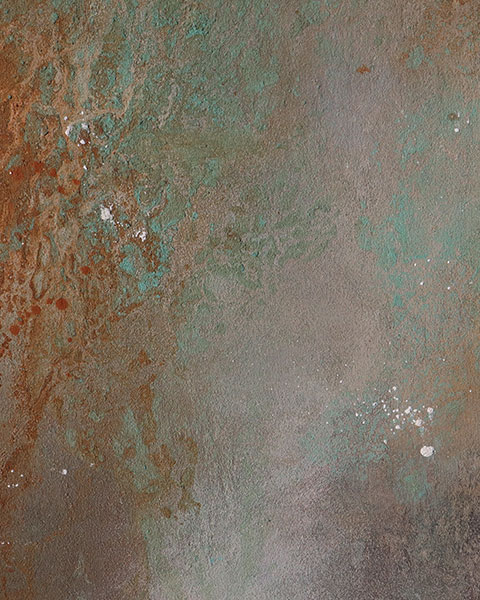 “The New Earth” is a gentle reminder of the fragile beauty of our only planet Earth. Created with pigments from rich red soil, vibrant green minerals, raw orange calcite, and ashes, this piece speaks to the natural cycles of life, death, and balance in between.