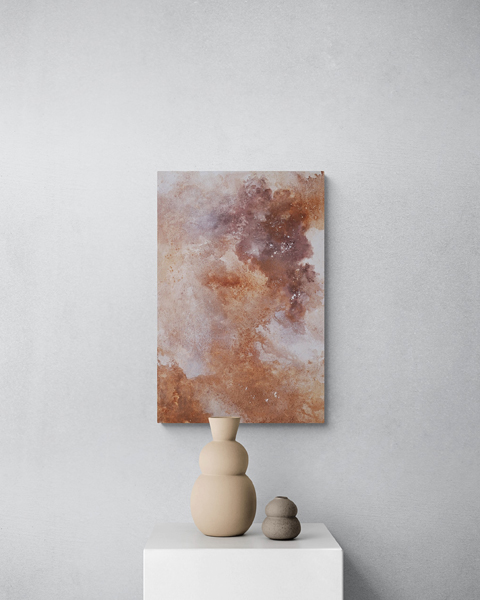 Created with earth pigments, violet stone, and raw orange calcite, this piece is a celebration of wishes fulfilled and the magic of manifesting what once felt far away. While Dreamy Galaxy embodies the energy of dreaming, The Wish Came True is its joyful realization – a reminder that the universe listens and delivers. Hang this piece as a testament to faith, patience, and the power of believing.