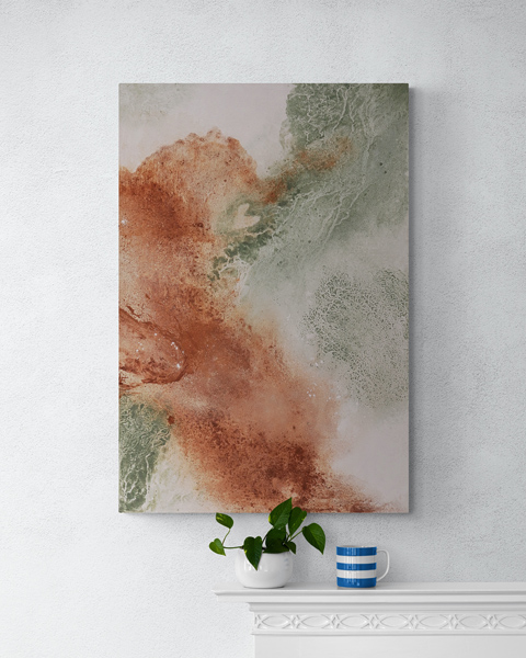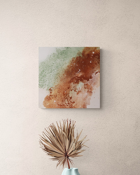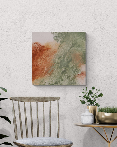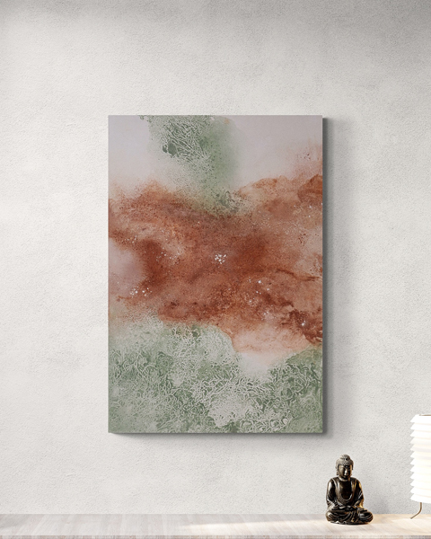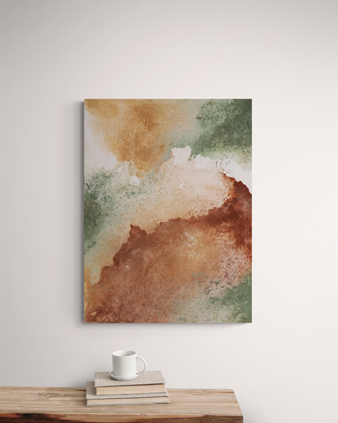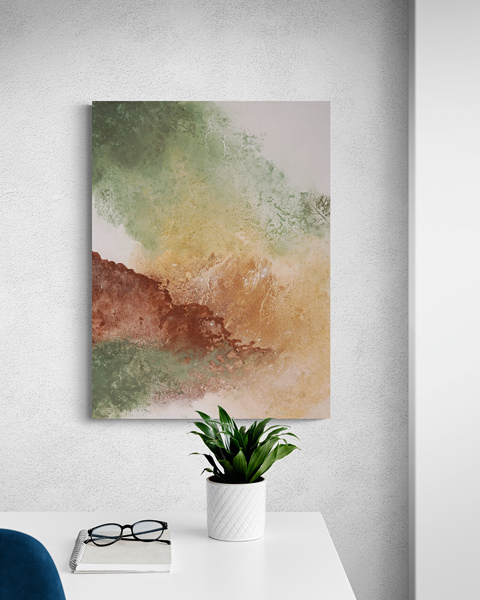 Feel the heart of the forest with artist Valerija Fric’s latest collection, “Forest Dreamscape” 2023. These 15 paintings show tribute to our deep connection with nature. Valerija’s vision transports you to the forest’s core, where time stands still and the forest becomes a sanctuary of peace. Warm summer hues show the sun’s magical rays, while vibrant greens breathe life into the collection. Valerija uses natural pigments in earthy tones, complemented by raw calcite and aventurine crystals, to give paintings even more energetic touch.
