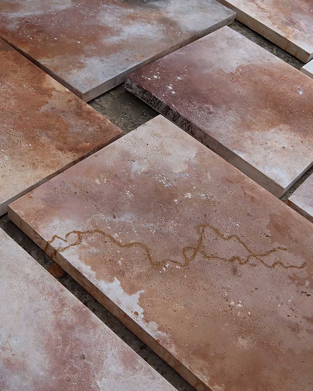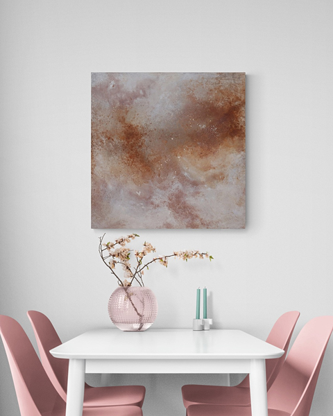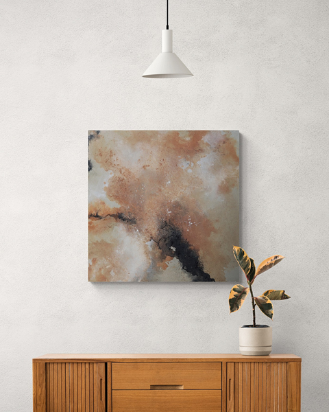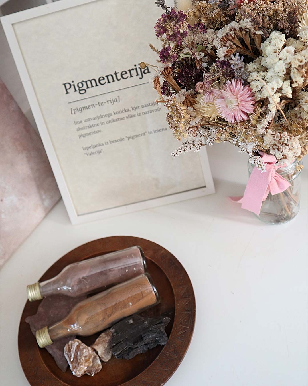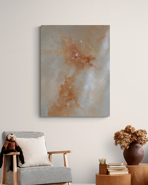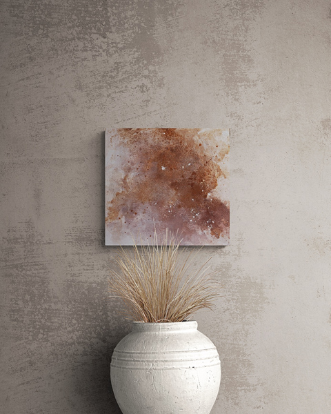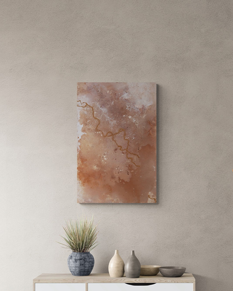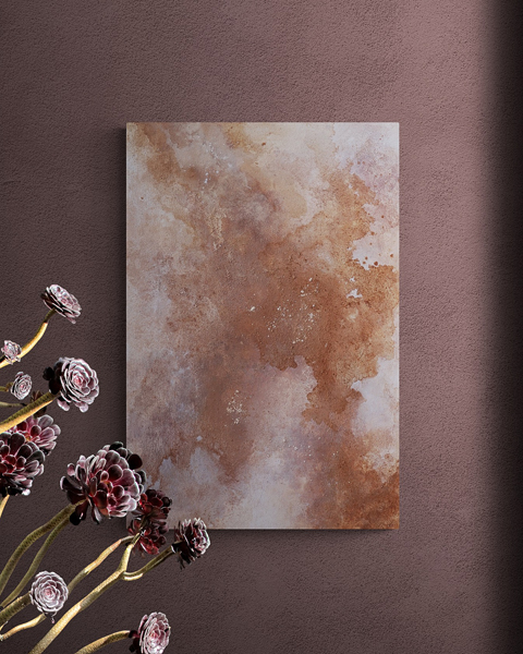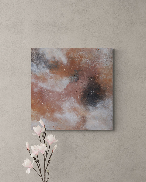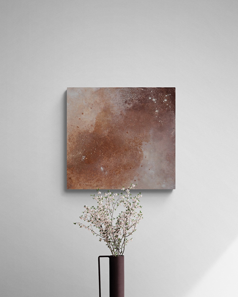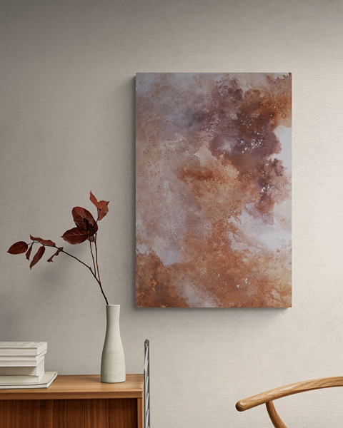 Each piece is made with earth pigments, ashes, raw orange calcite, and violet stone, layered on handmade wooden canvases to honor nature’s raw beauty. This collection is a reminder that we’re part of something infinite, grounding us on Earth while we’re reaching for the stars.